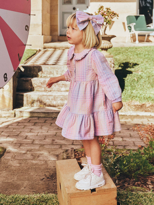 Huxbaby Rainbow Check Long Sleeve Frill Dress