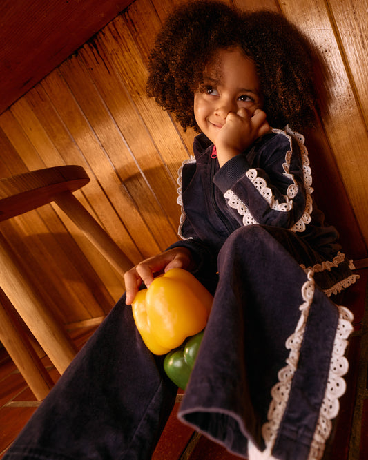 Goldie + Ace Velour Broderie Wide Leg Pant Navy