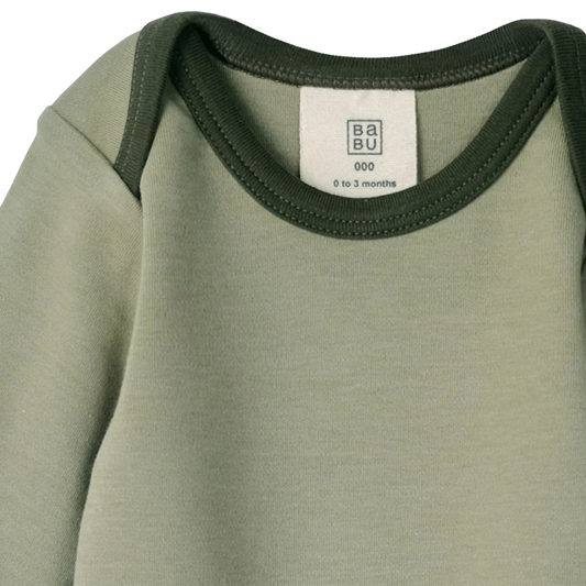 Babu Organic Cotton Long Sleeve Bodysuit Sage Contrast
