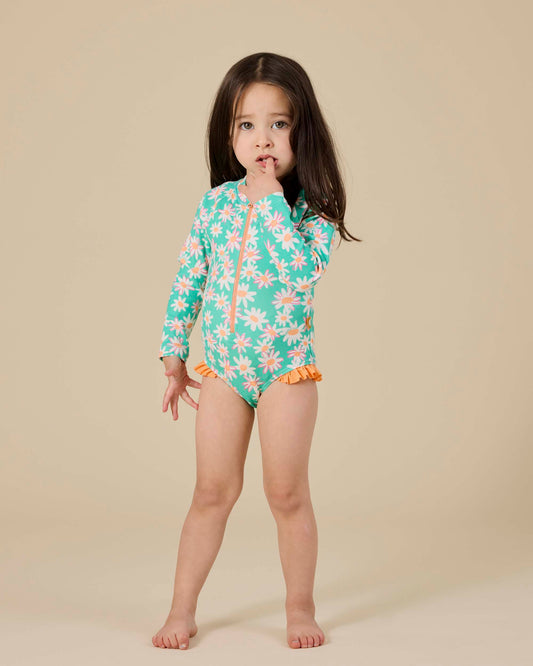 Goldie + Ace Daisy Patch Long Sleeve Frill Swimsuit