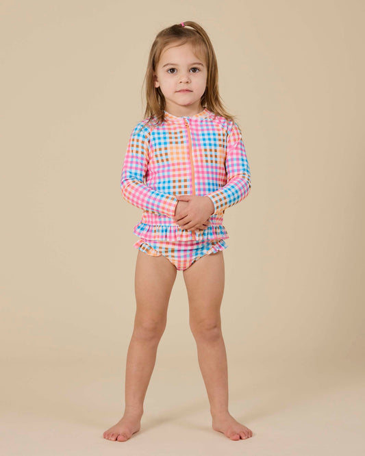 Goldie + Ace Rainbow Gingham Zip Up Rashguard