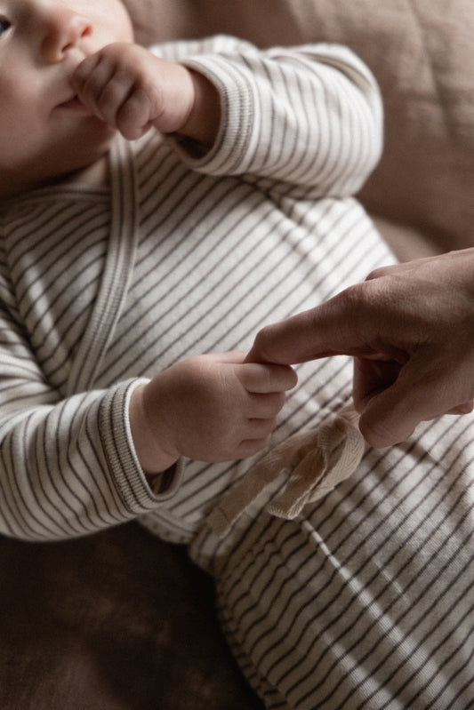 Nature Baby Long Sleeve Kimono Bodysuit Mushroom Pinstripe