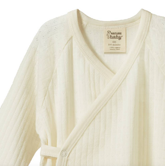 Nature Baby Merino Essential Kimono Stretch & Grow Pointelle Natural
