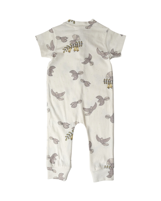Babu Organic Cotton Short Sleeve Onesie Pīwakawaka