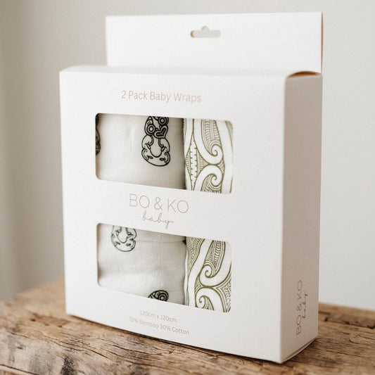 Bo & Ko 2 Pack Wrap Set Te Pātiki Mocha & Te Pātiki Green