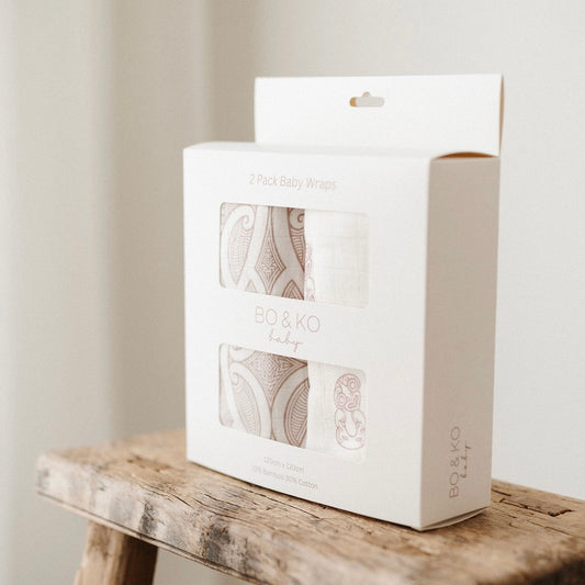 Bo & Ko 2 Pack Wrap Set Koru Mocha & Te Pātiki Mocha