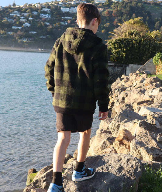 Swanndri Kid's Crooked River Wool Hoodie Olive/Black Check
