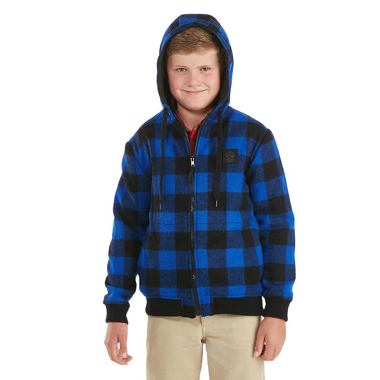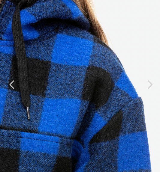 Swanndri Kid's Crooked River Wool Hoodie Blue/Black Check
