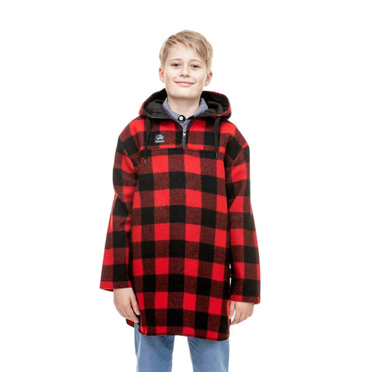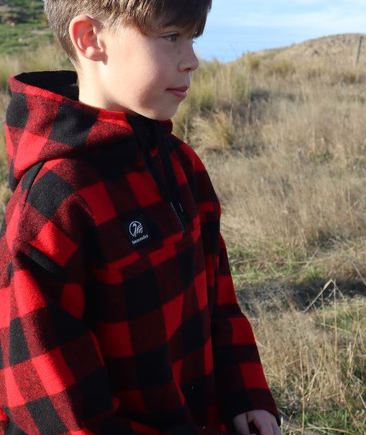 Swanndri Kid's Crooked River Wool Hoodie Red/Black Check