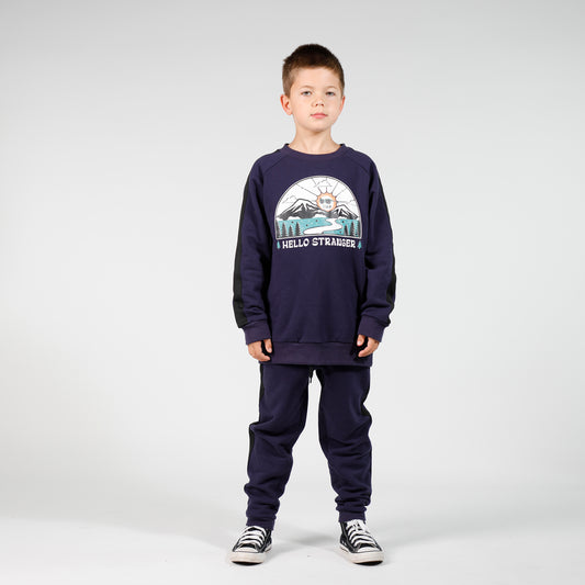 Hello Stranger Raglan Crew Navy