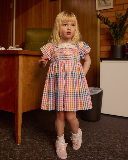 Goldie + Ace Rainbow Gingham Flo Smocked Dress