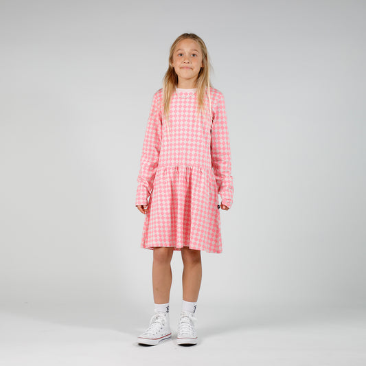 Hello Stranger Long Sleeve Monday Dress Pink Check
