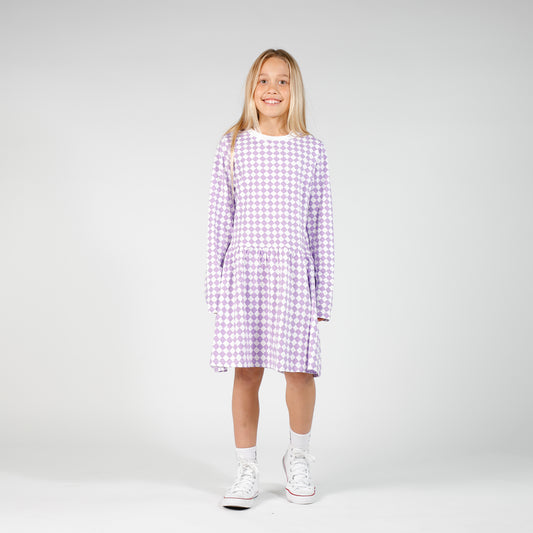 Hello Stranger Long Sleeve Monday Dress Purple Check