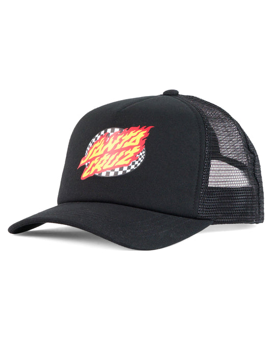 Santa Cruz Oval Check Flame Dot Trucker Cap Black