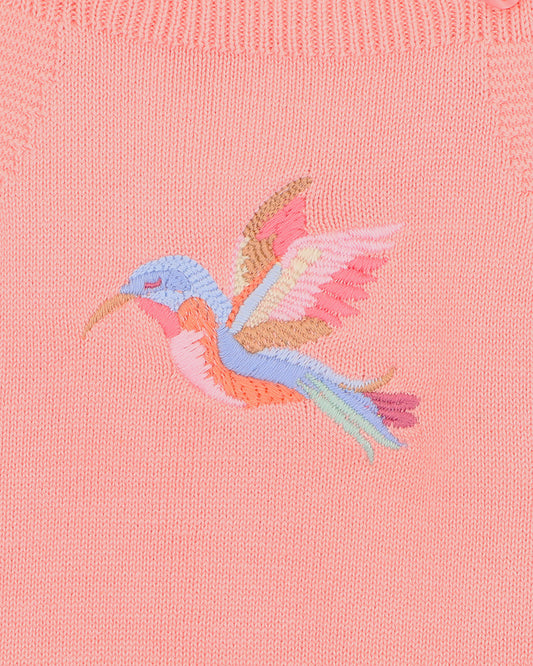 Minihaha Songbird Embroidered Knitted Bodysuit Shell Pink
