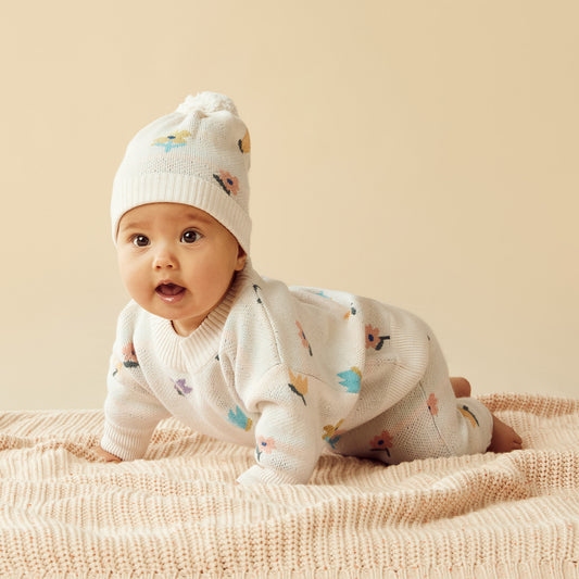Wilson & Frenchy Organic Knitted Jacquard Hat Flower Pop
