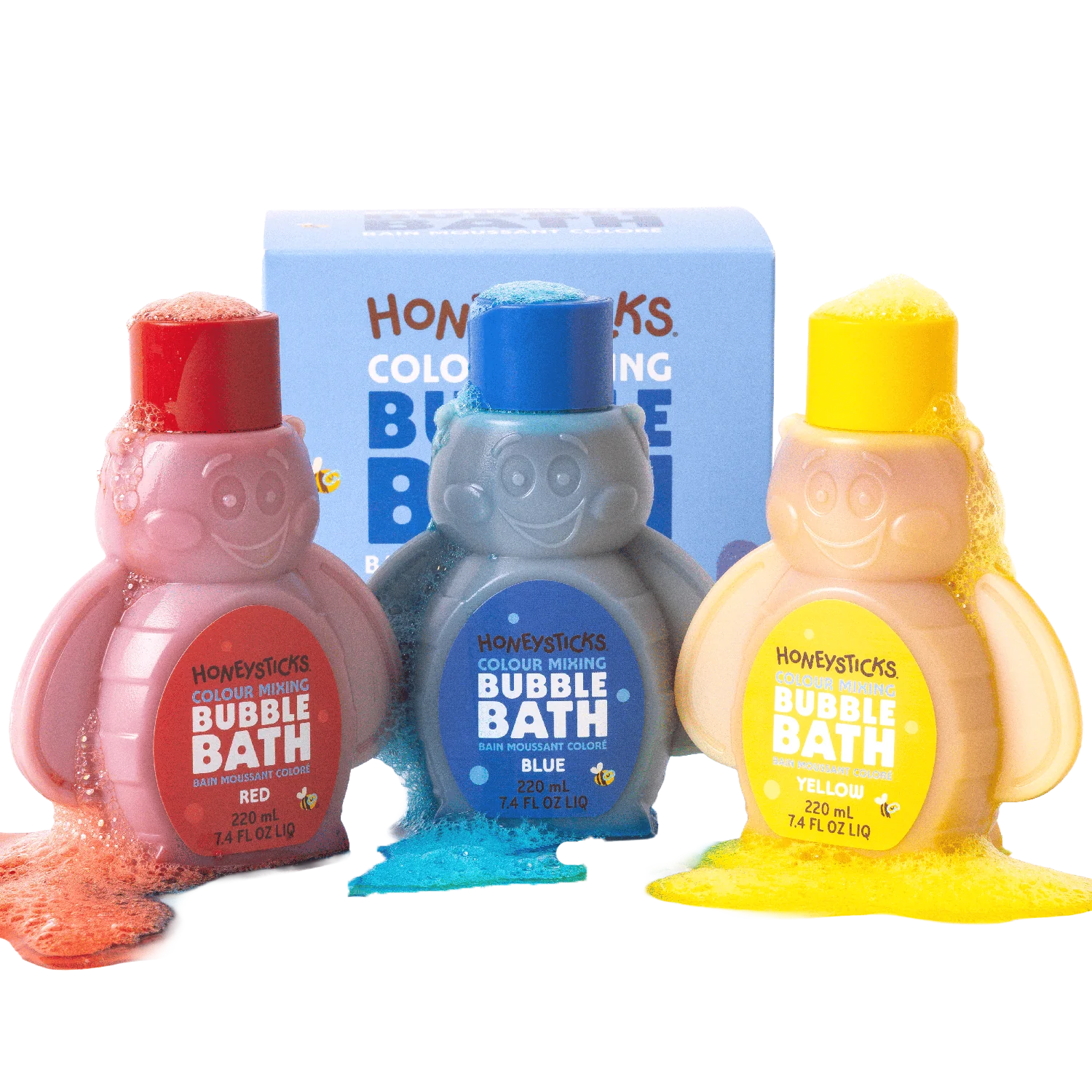 Honeysticks Bubble Bath Colour Mixing 3pk 220ml transforms bath time into a playful, hands-on experiment in colour and creativity. With three mixable colours and a plant-based formula, kids can create six vibrant shades – all while enjoying soft, super-foamy bubbles. Fun bee-shaped bottles add to the magic.