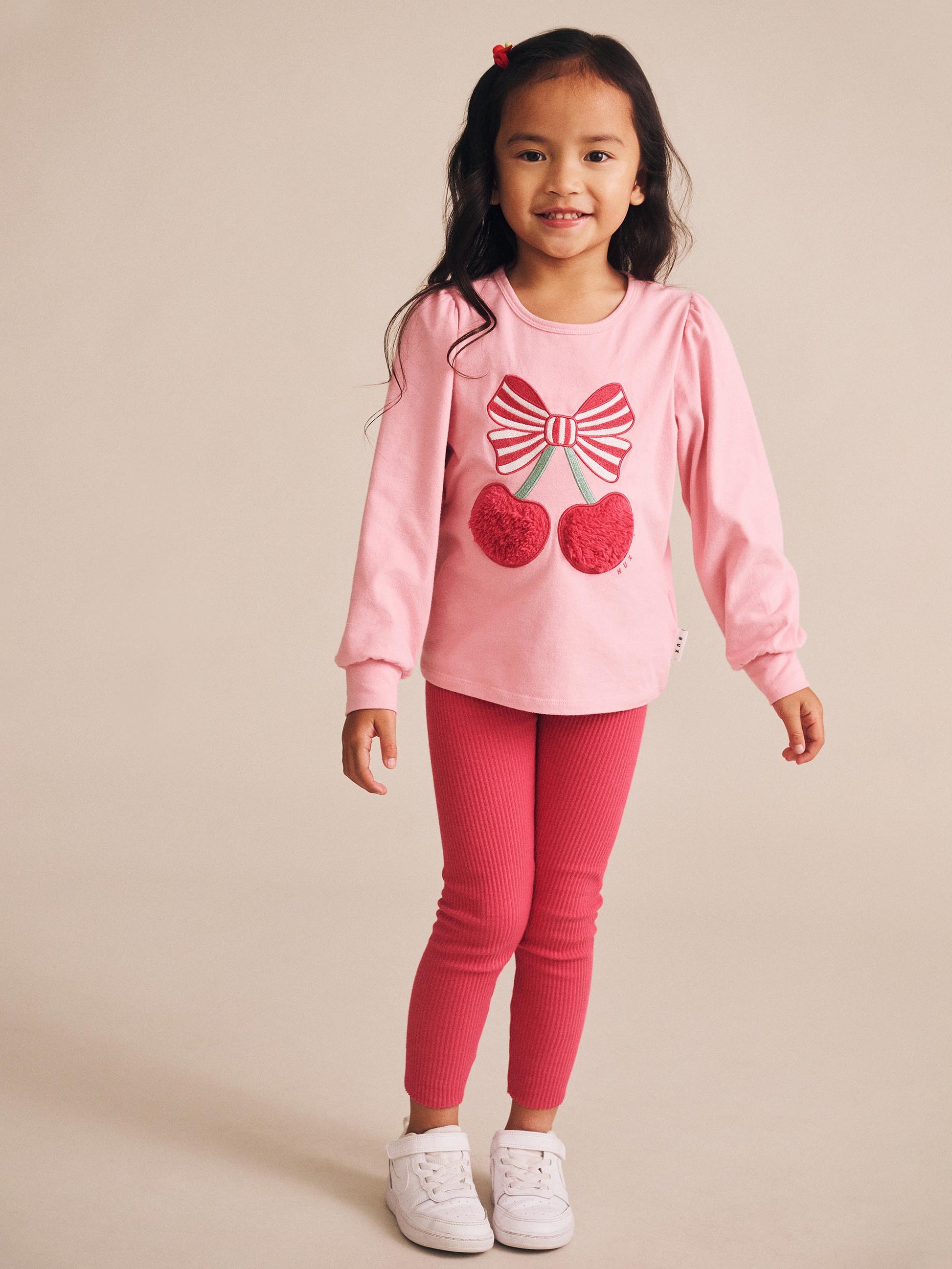 A versatile layering legging in cherry red. These comfy pants are made from extra thick ribbed cotton to keep little bodies warm. They feature a soft yet stretchy waistband for ultimate tummy comfort and a drawstring closure for an adjustable fit. A true wardrobe essential.