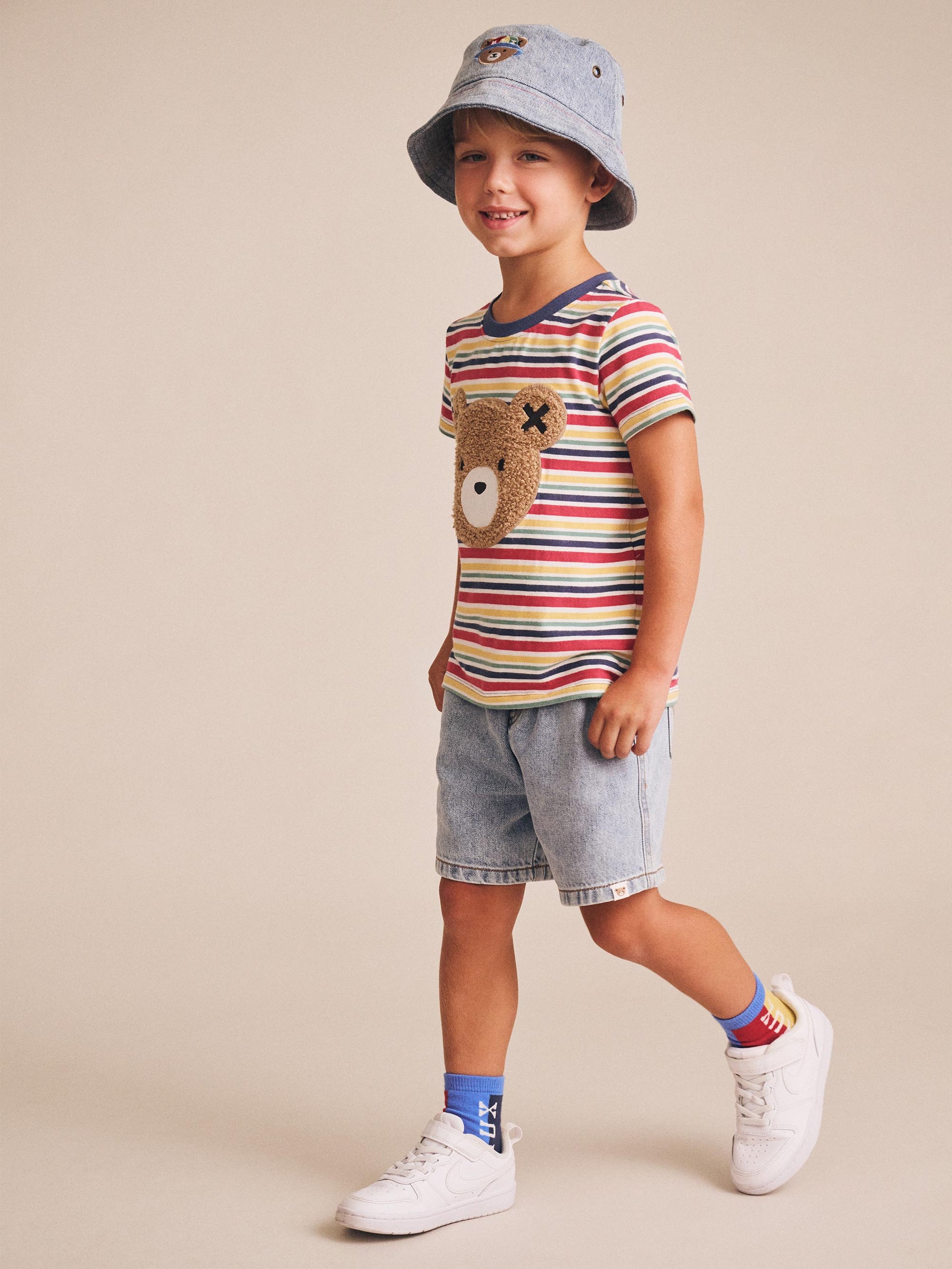 No other shorts compare. Made from the softest denim you’ll ever feel, they feature a kid-friendly elasticated waistband and adjustable drawstring. Front and back pockets hide treasures perfectly, and an oversized, relaxed cut looks cool on every occasion. Spot the Huxbear patch on the bum as they run away to play.
