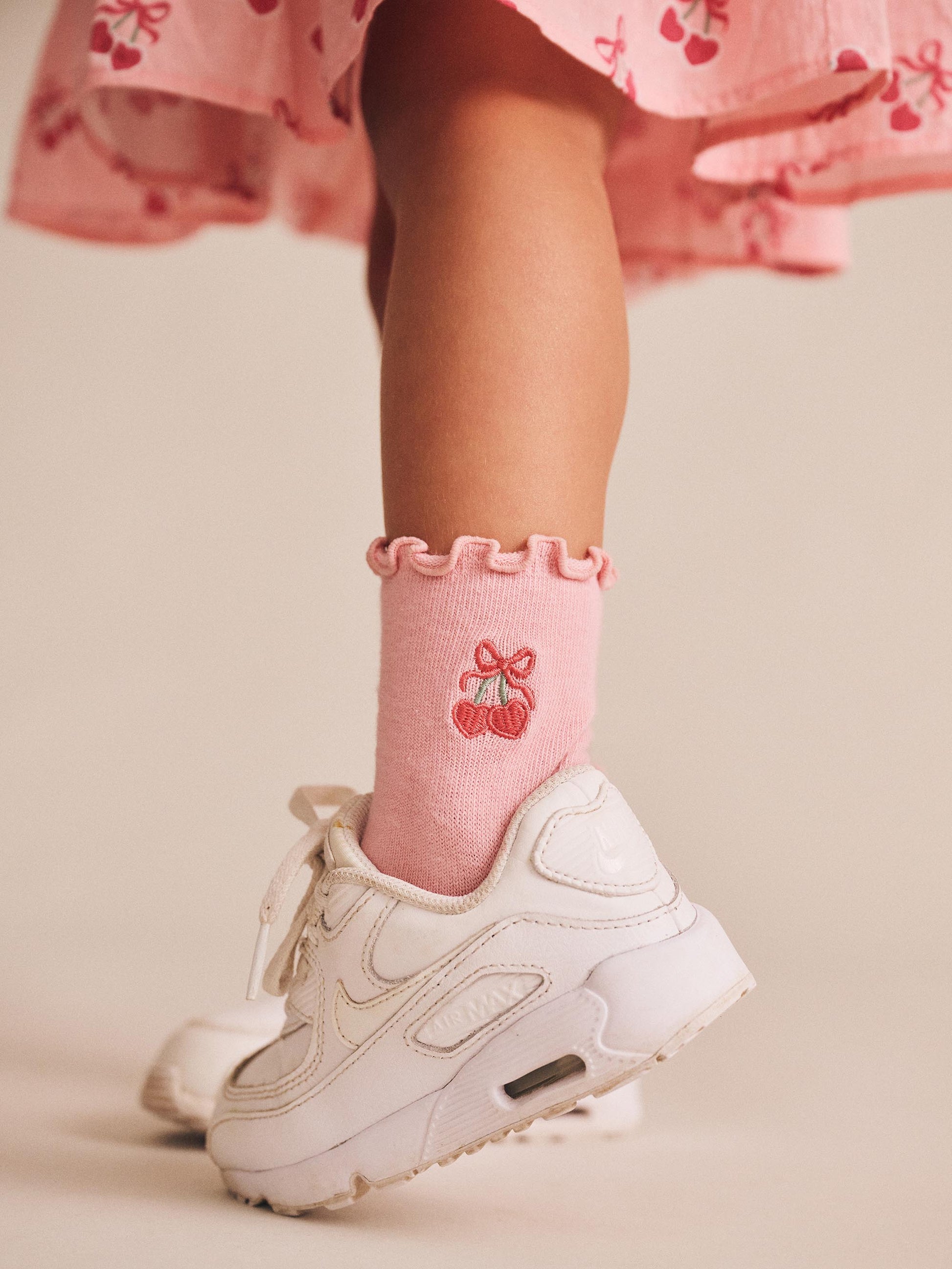 Two pairs of the softest, squishiest ankle socks you’ll ever meet. Made with a breathable blend of fibres to cushion busy feet. These pretty frilly edge socks feature our custom festive embroideries. Made with non-slip grippies on baby sizes 6-12 months.