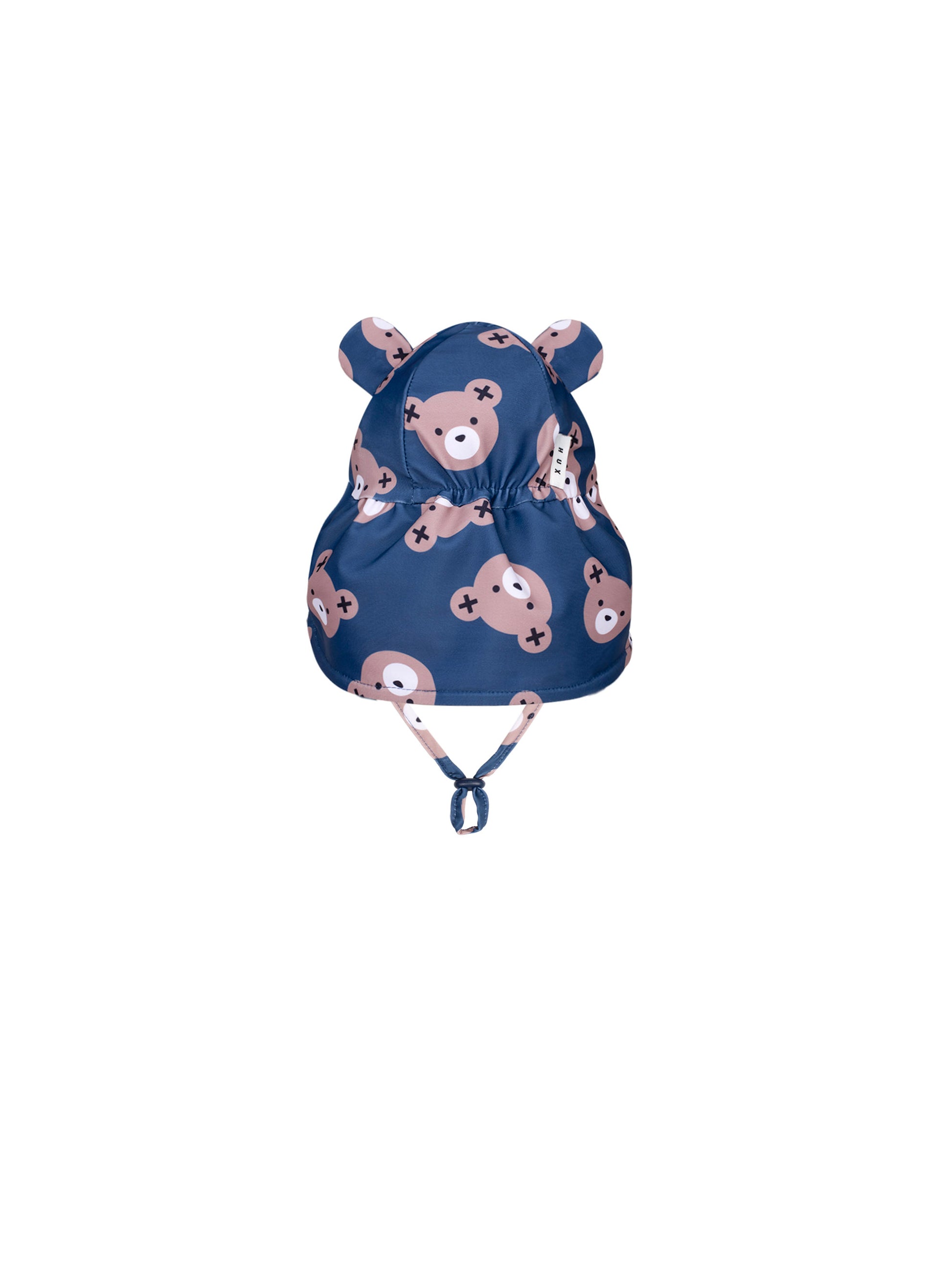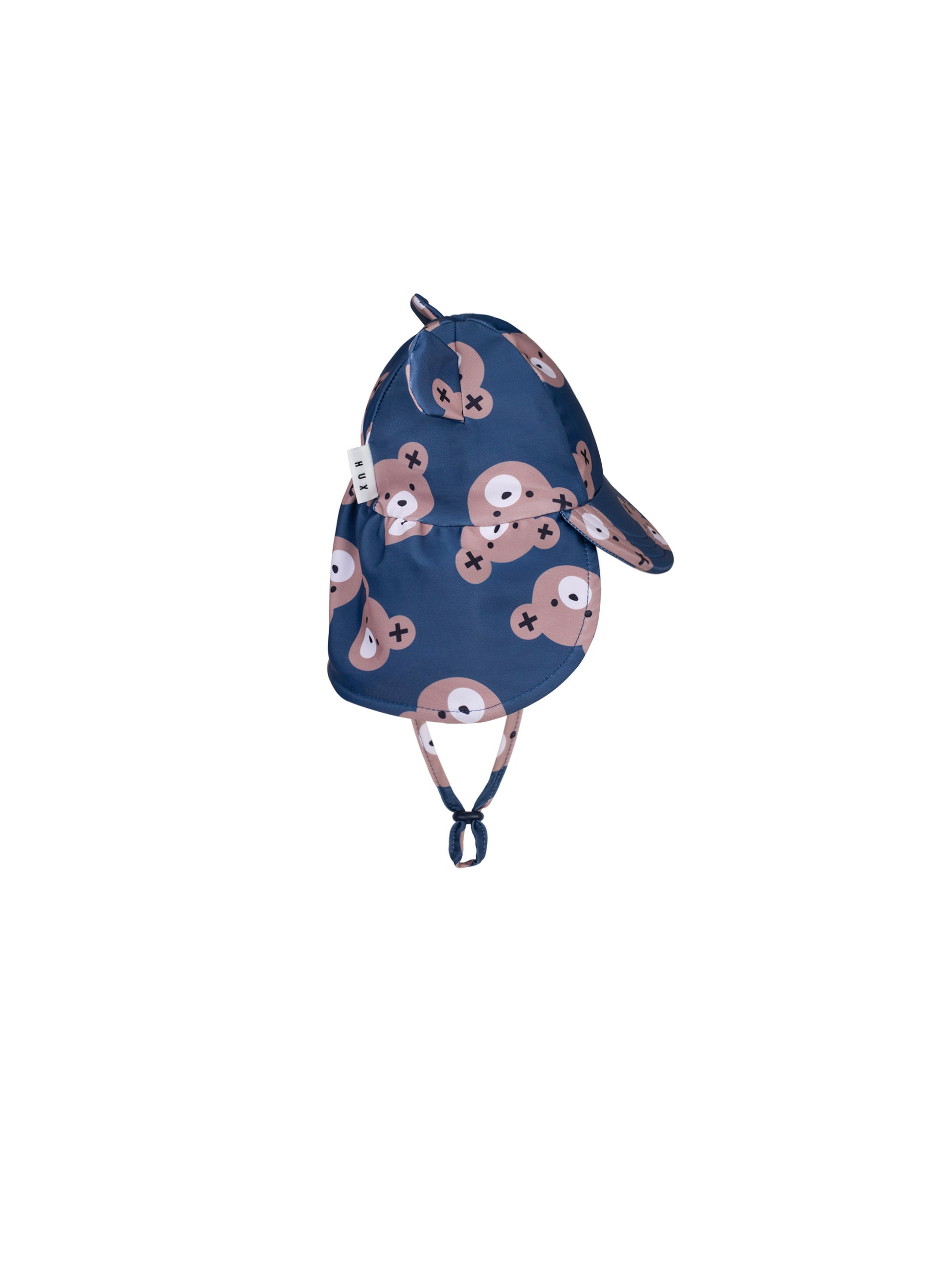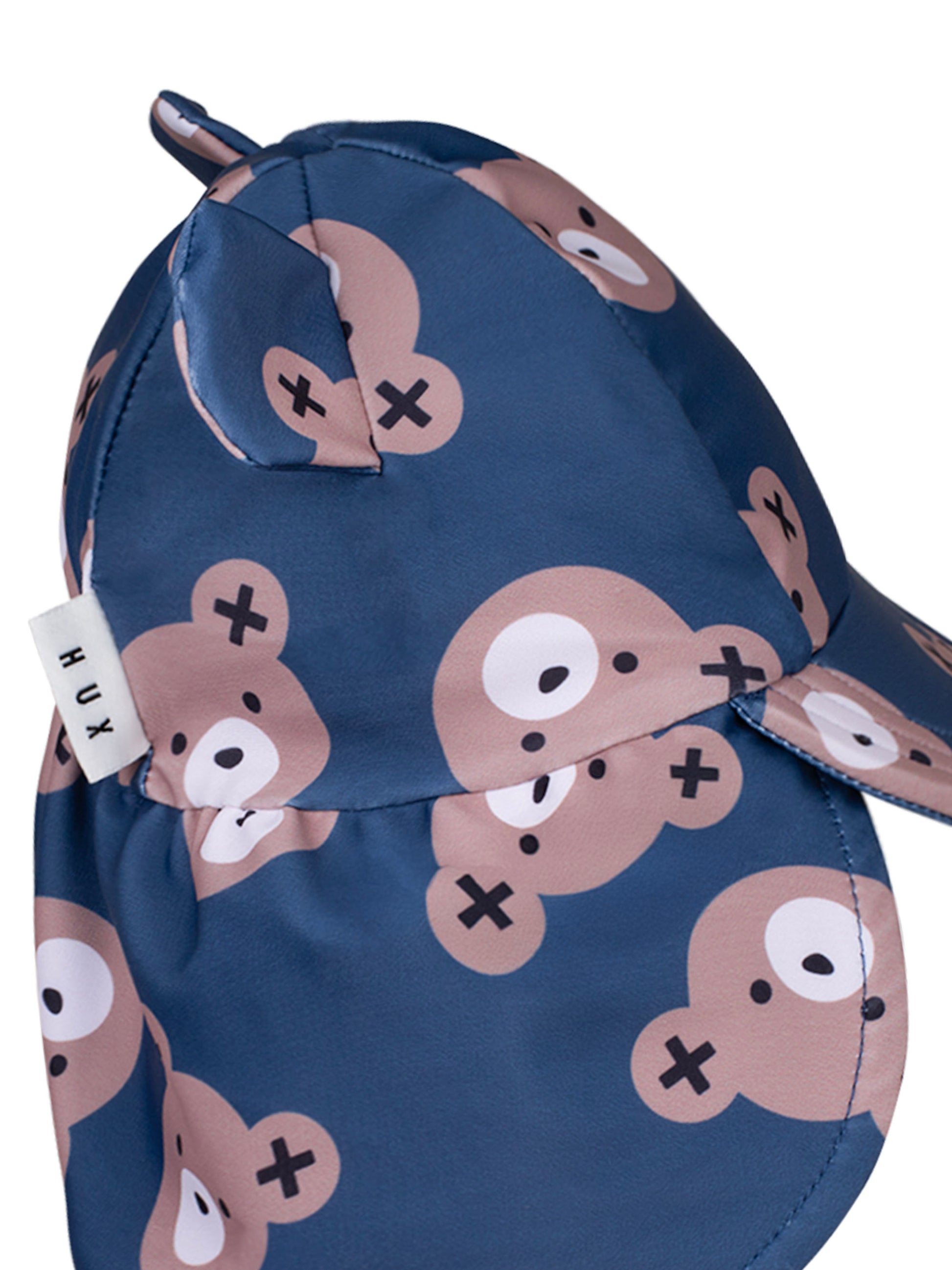 A swim hat they’ll actually want to wear. This legionnaire sun hat is practical and cute. Made from UPF50+ recycled polyester, it features a fun Huxbear pattern and bear ears. Adjustable chin strap to prevent from flying away. Pair it with a matching Huxbear swimsuit!