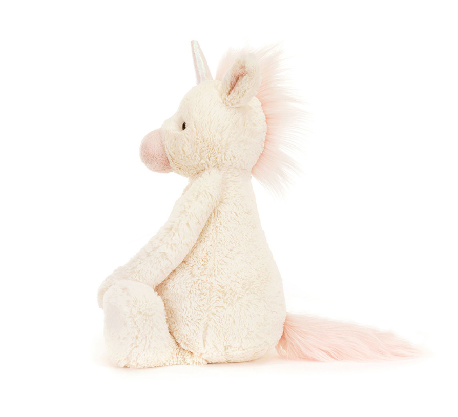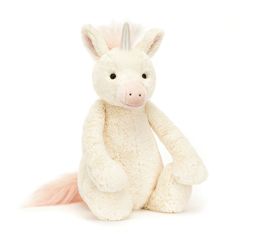 Bashful Unicorn is heavenly to hold, in souffle-soft vanilla fur. This fabulous pal is wonderfully detailed, with strawberry-sundae nose and ears, and silky mane and tail. And check out that squashy holographic horn, shining with magical light!