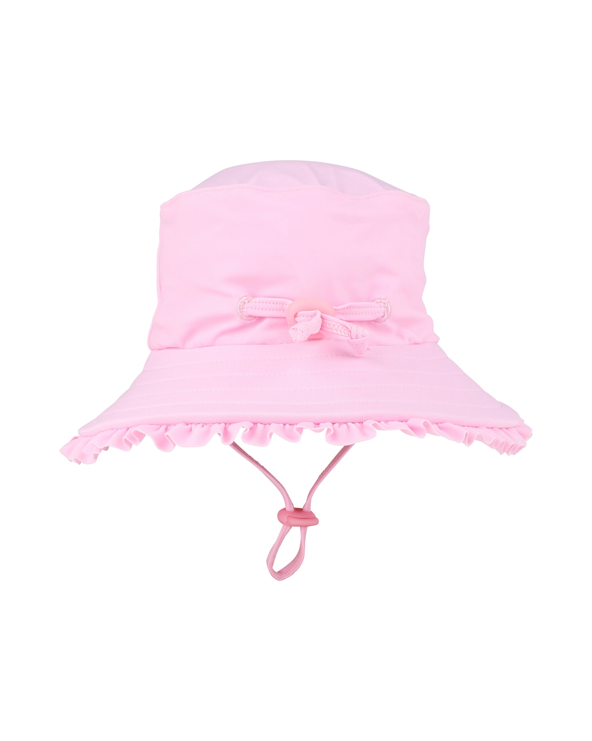 A summer essential with a sweet twist, this pale pink sunhat is designed for sun-smart girls who love a little frill. With its soft hue and gentle ruffle brim, it adds a playful finish to any beach day outfit - while offering serious sun protection.