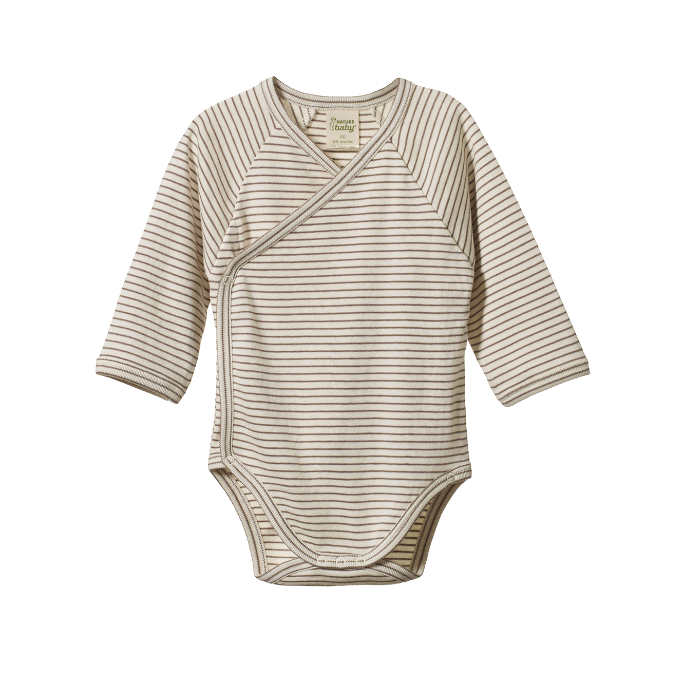 Nature Baby Long Sleeve Kimono Bodysuit Mushroom Pinstripe