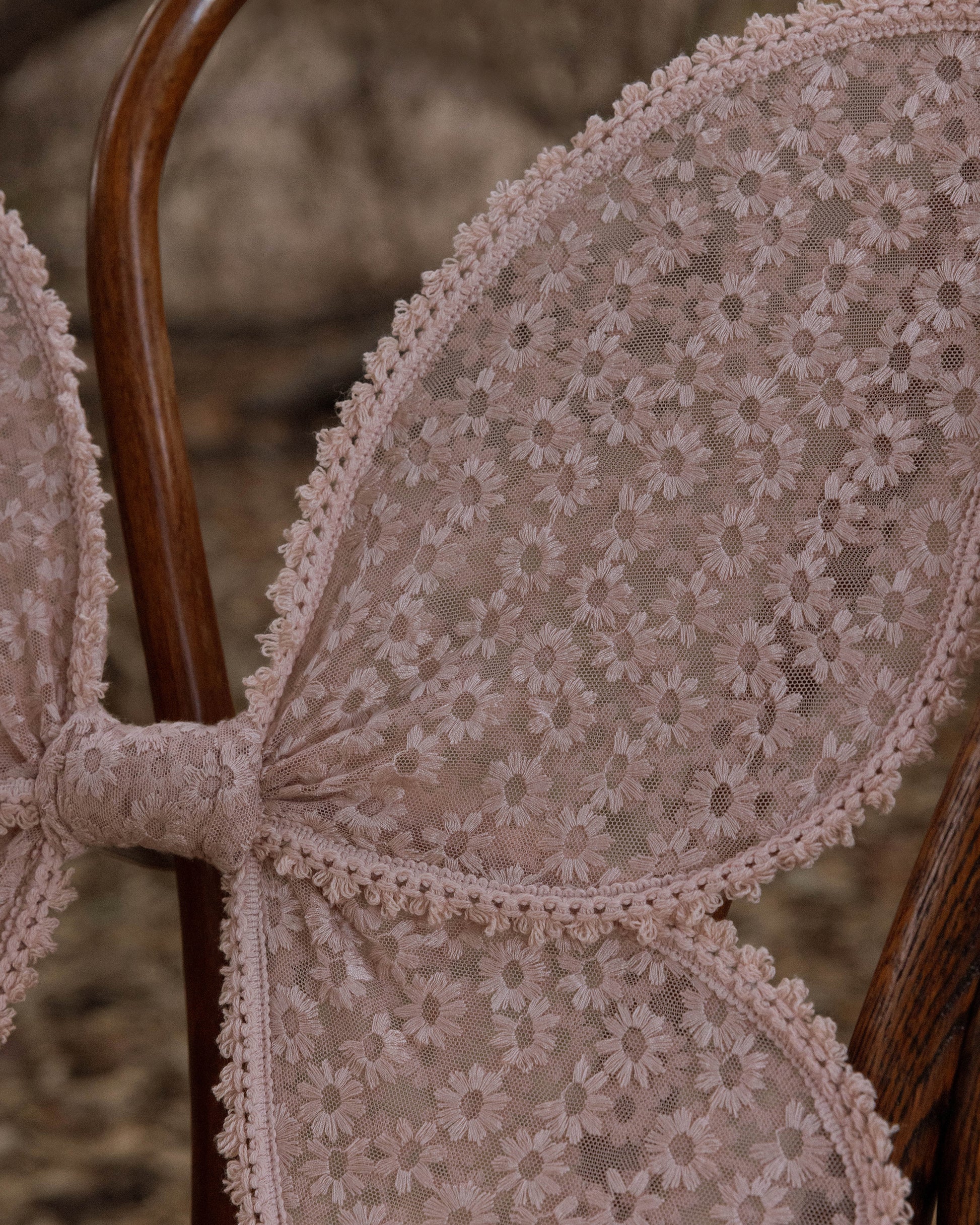 Featuring an 'embroidered daisy' mesh in a 'rose' hue.