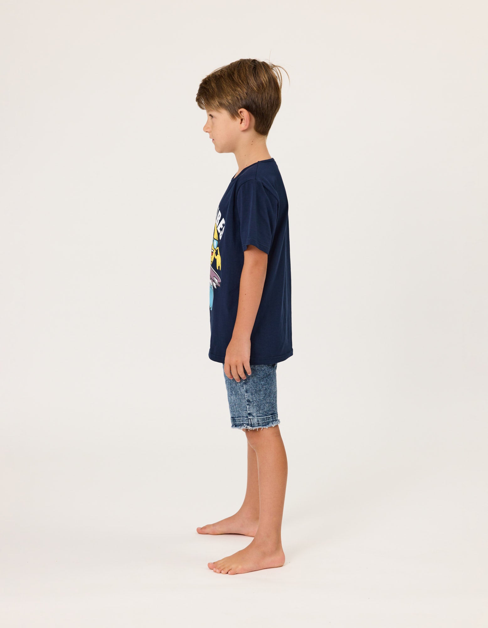 - Multi-coloured ‘Rad Vibes’ placement print on chest