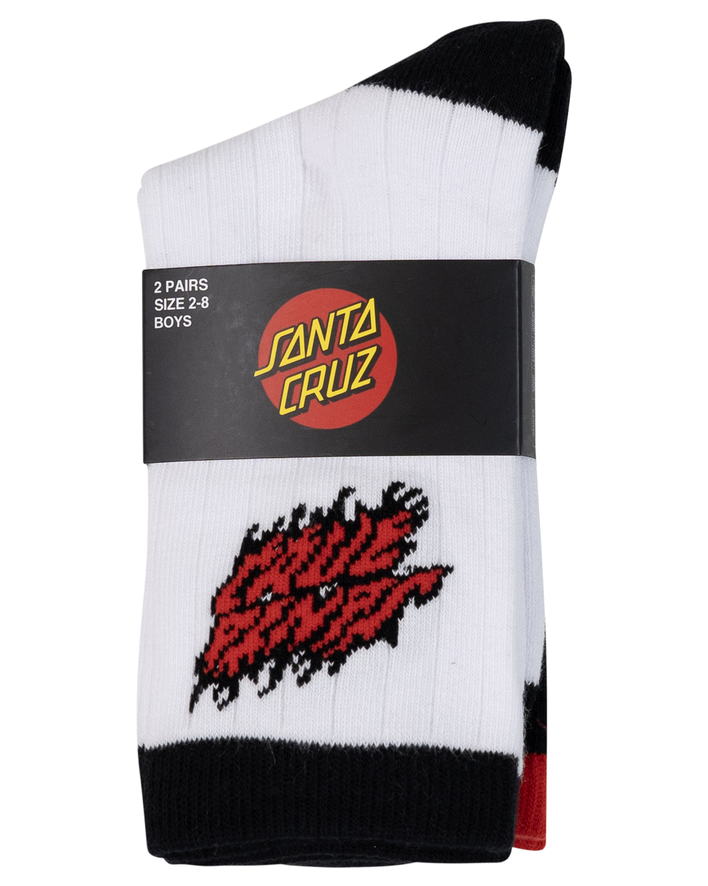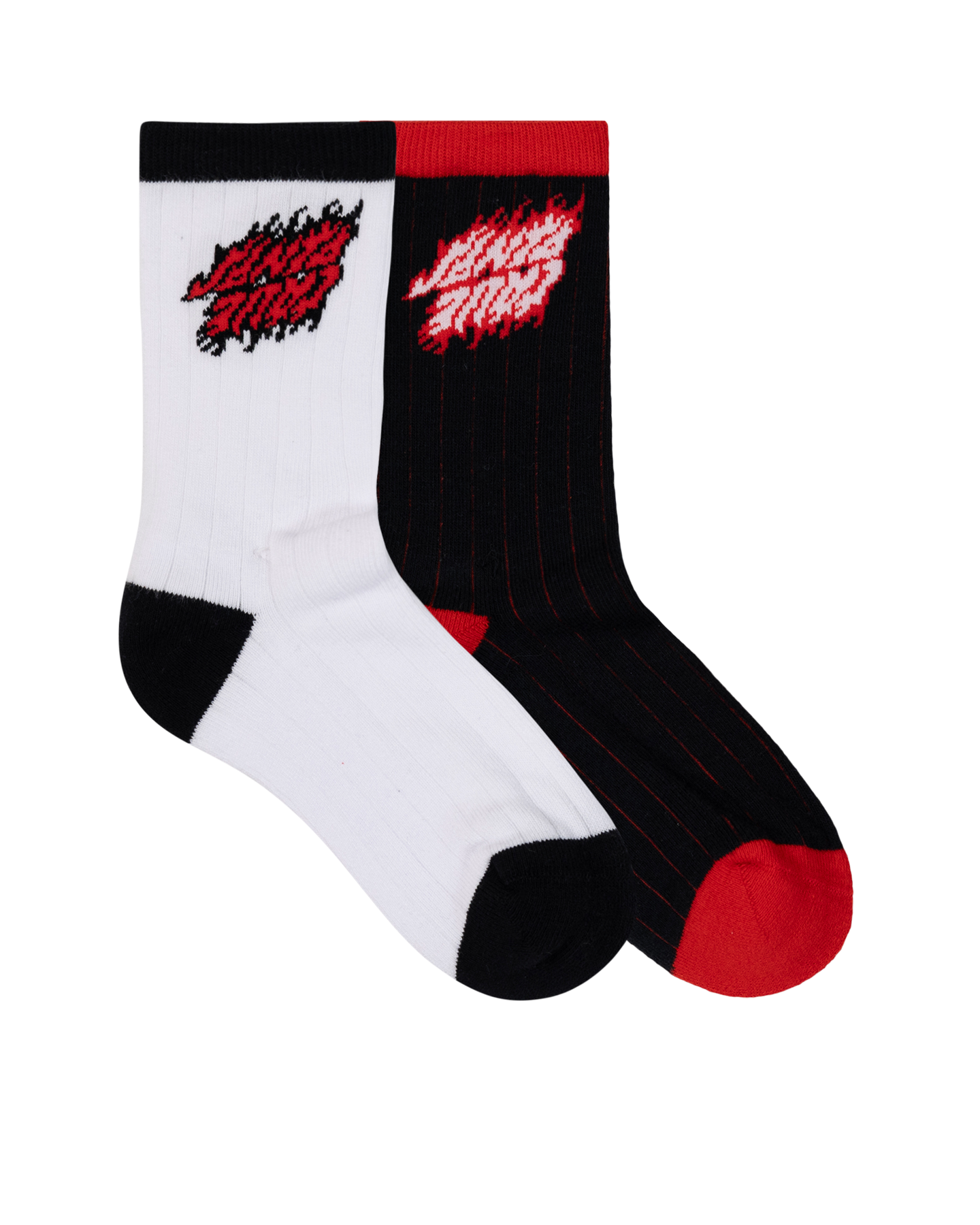 Santa Cruz Flamed Stack Upside Down Crew Sock 2 Pack White | Black