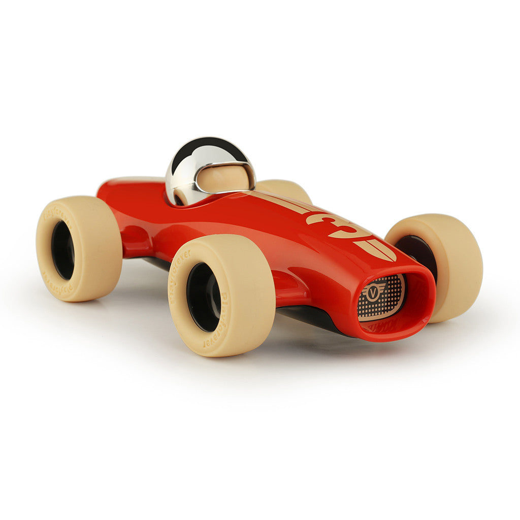 On your marks… get set… go! You can almost hear the roar of the engine as Malibu stands poised, ready for the race. Drawing inspiration from the early Maserati Formula 1 cars of the 20s and 30s but with a modern Playforever twist, Playforever's Malibu racing car is built for speed. With a pure and simple cigar tube chassis, long nose and wide open mouth, its shape is sleek and stream-lined whilst its wide profile, low-to-the-ground rubber tyres give it a bold confidence to rival all others at the starting grid.