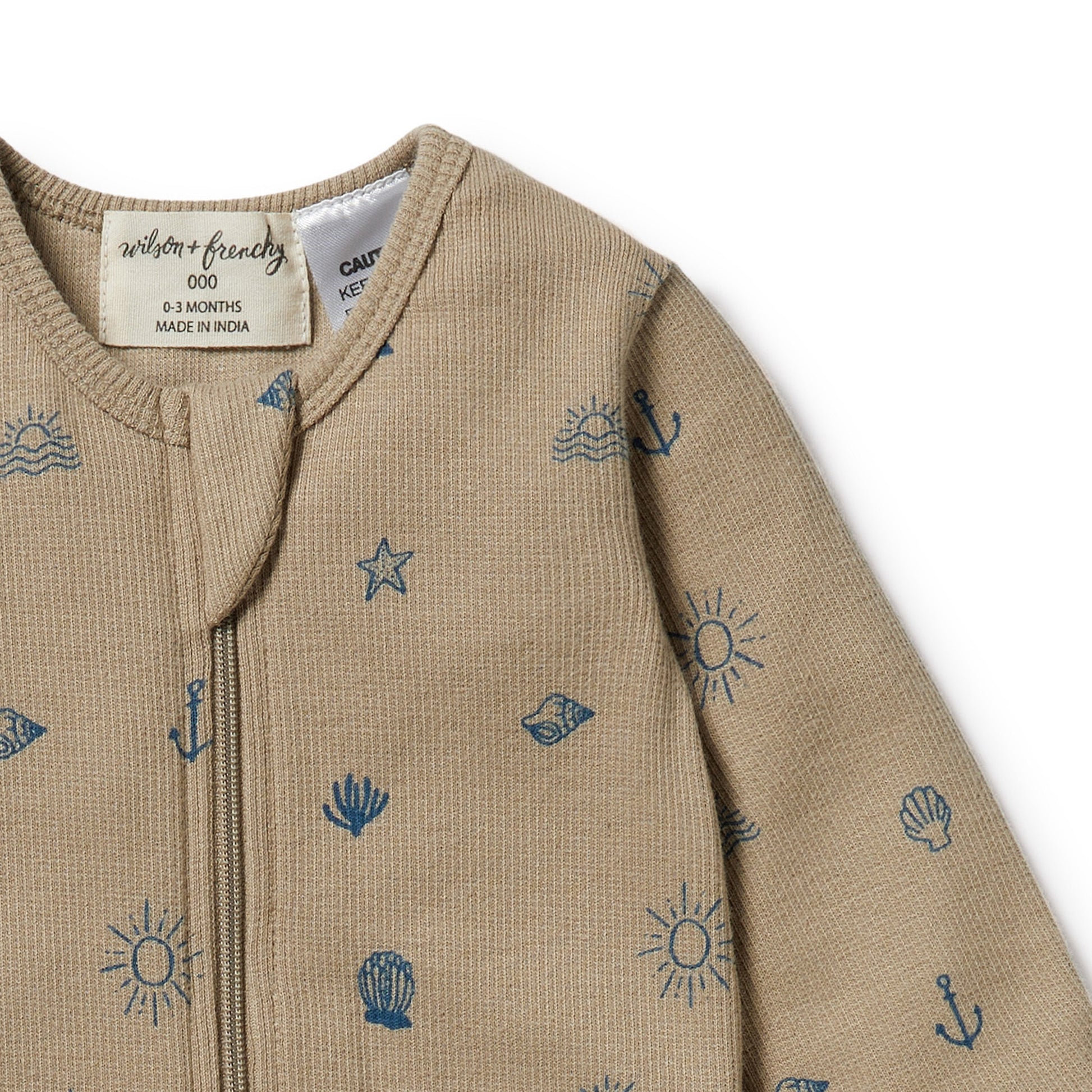 Wilson & Frenchy Organic Rib Zipsuit with Feet Summer Days